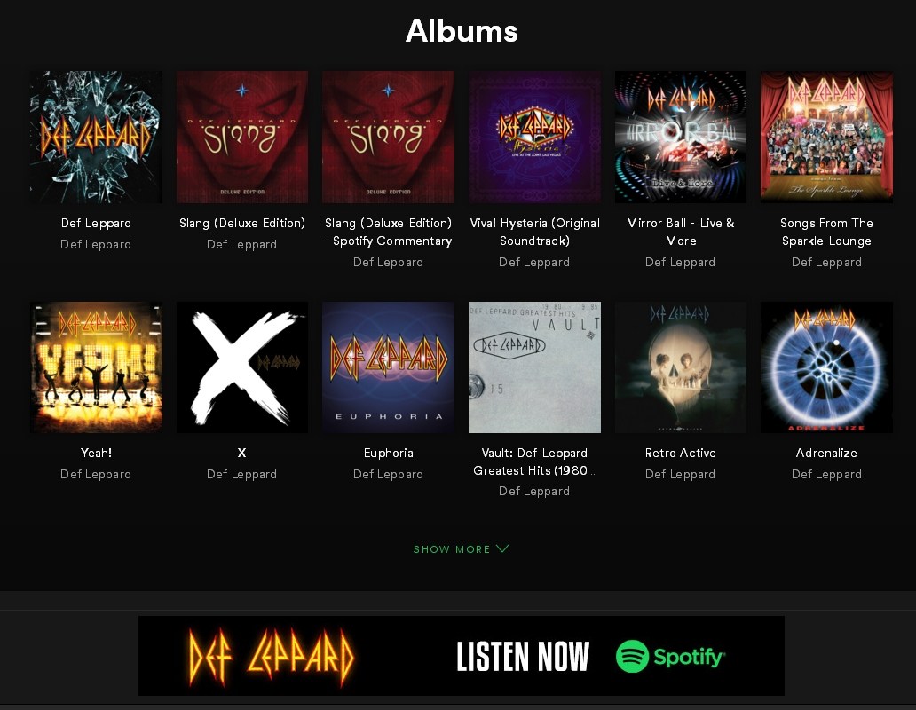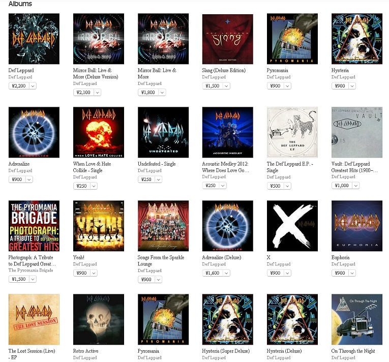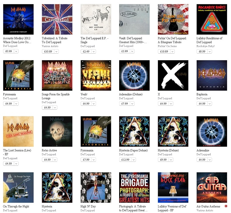 Def Leppard on iTunes UK/Japan and Spotify UK.